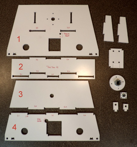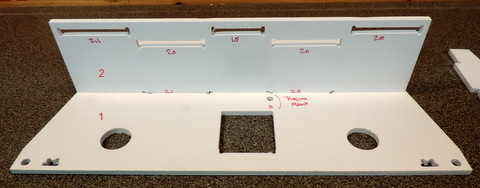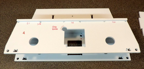 I enlarged the holes by hand using a drill - do that while the parts are still in the panel. It's easier than trying to hold the parts with tabs that might cut your fingers. |